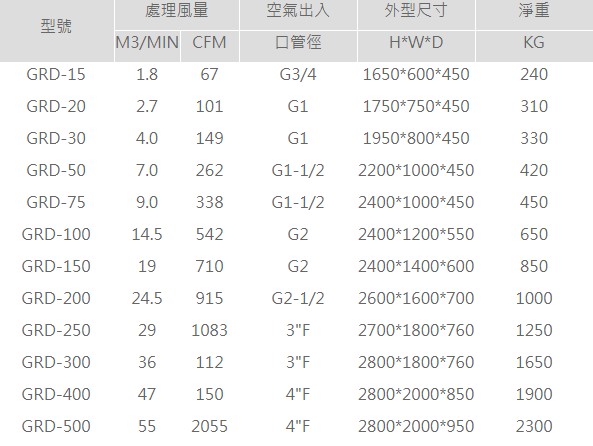 *特殊高壓空氣及特殊氣體乾燥可訂購。