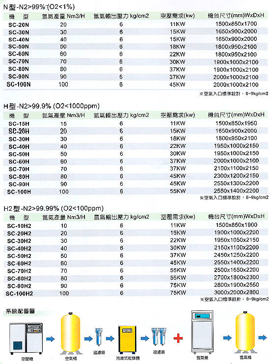壓縮空氣過濾裝置、管路系統、吸附塔、吸附劑、電控系統、氮氣回充槽、系統管路控制閥、排氣消音裝置、含氧分析儀、純度輸出控制系統、底座外箱…